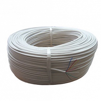 Кабель с однопроволочными медными жилами, с изоляцией из композиции полиэтилена и оболочкой из белого ПВХ пластиката, предназначен для внутренней стационарной прокладки для систем сигнализации, телекоммуникации, управления и сбора данных.Бухта 200м.