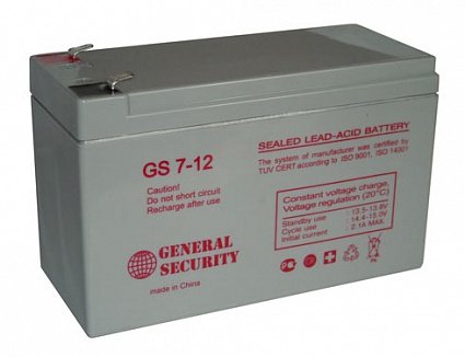 Аккумуляторы GENERAL SECURITY серии GS – необслуживаемые (выполненые по AGM–технологии) батареи общего применения имеют небольшие массогабаритные показатели; способны работать в циклическом режиме; герметизированы (работоспособны в любом положении); безопасны в эксплуатации; имеют низкий уровень саморазряда; высоконадежны. Предназначены для обеспечения резервным питанием систем охраны и безопасности, телекоммуникационного оборудования, промышленных объектов широкого назначения, работы в ИБП12 В, 7.2 Ач, 151*99*100 мм, 2.4 кг